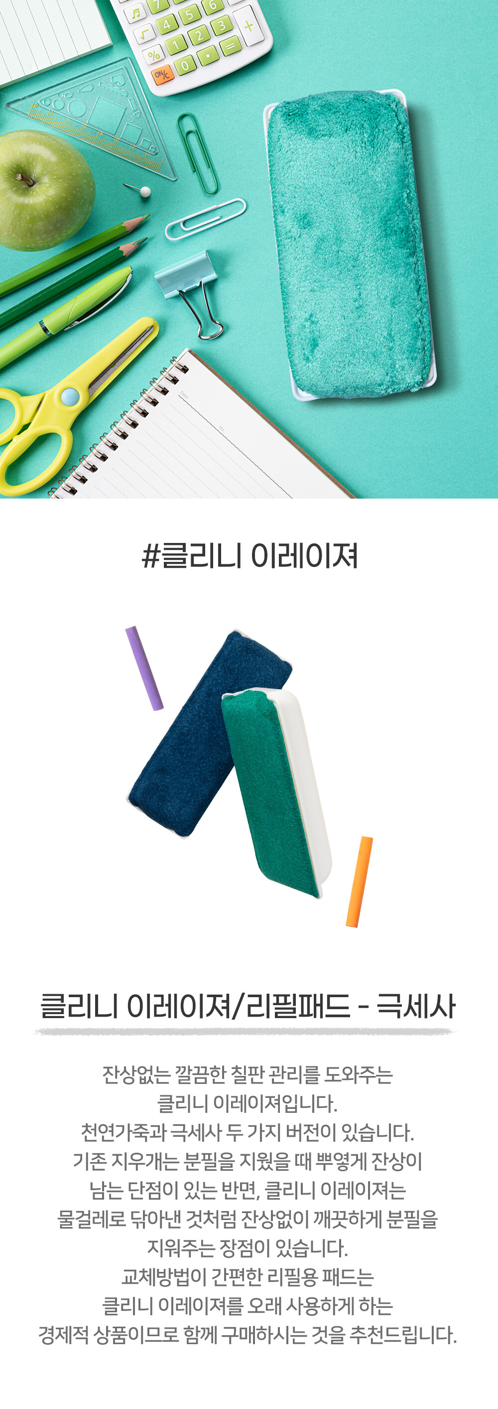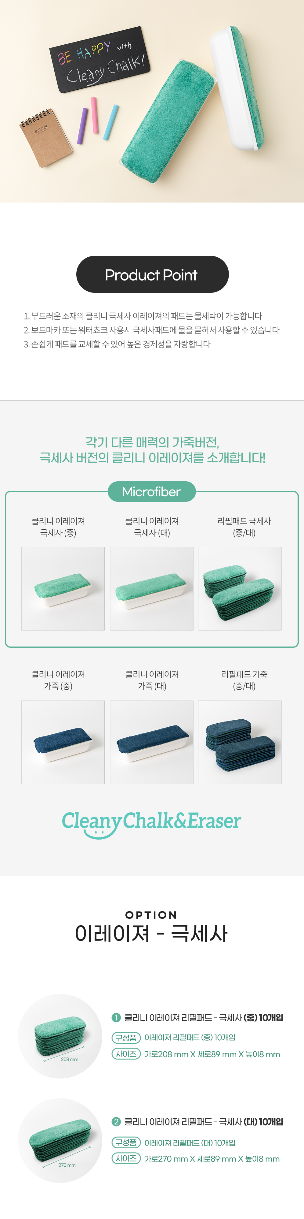클리니 이레이져 극세사 리필패드 - 중/대